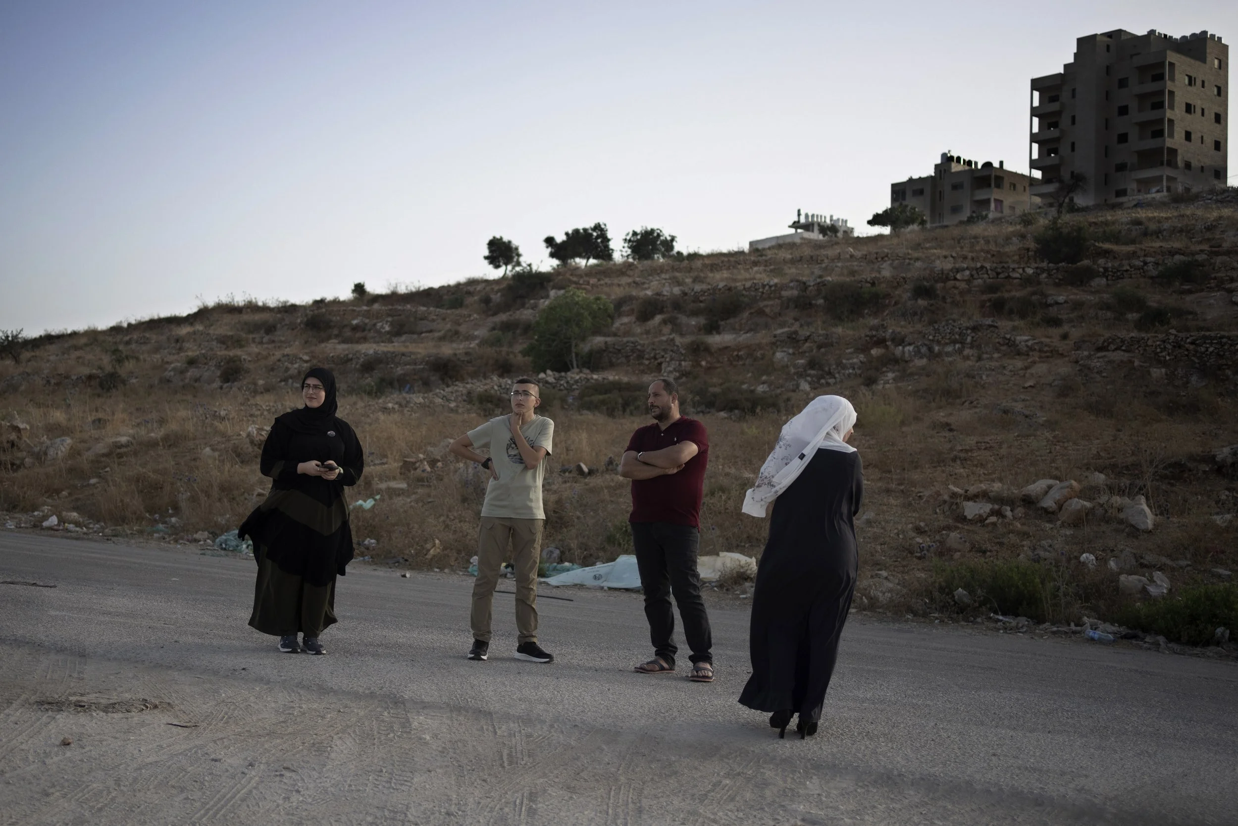 A Palestinian family stands outside of Israel's Ofer Prison, though they did not see their loved one being released. (AP Photo/Maya Alleruzzo)